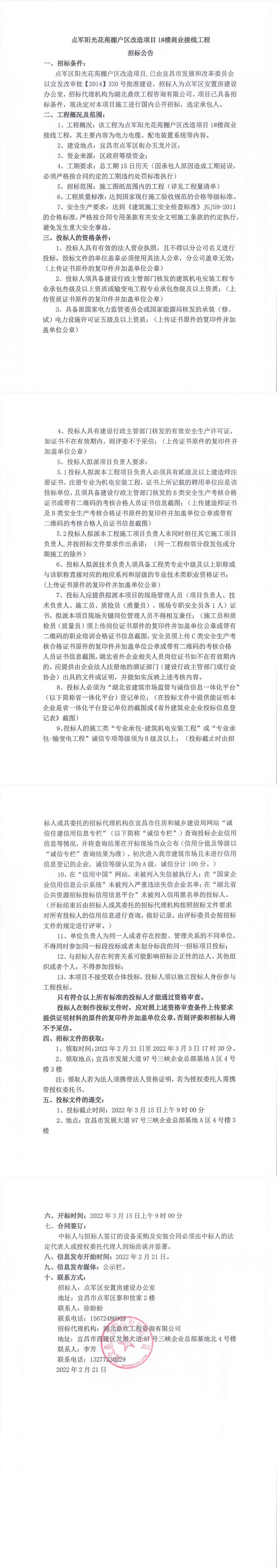 點(diǎn)軍陽(yáng)光花苑棚戶(hù)區(qū)改造項(xiàng)目1#樓商業(yè)接線工程招標(biāo)公告