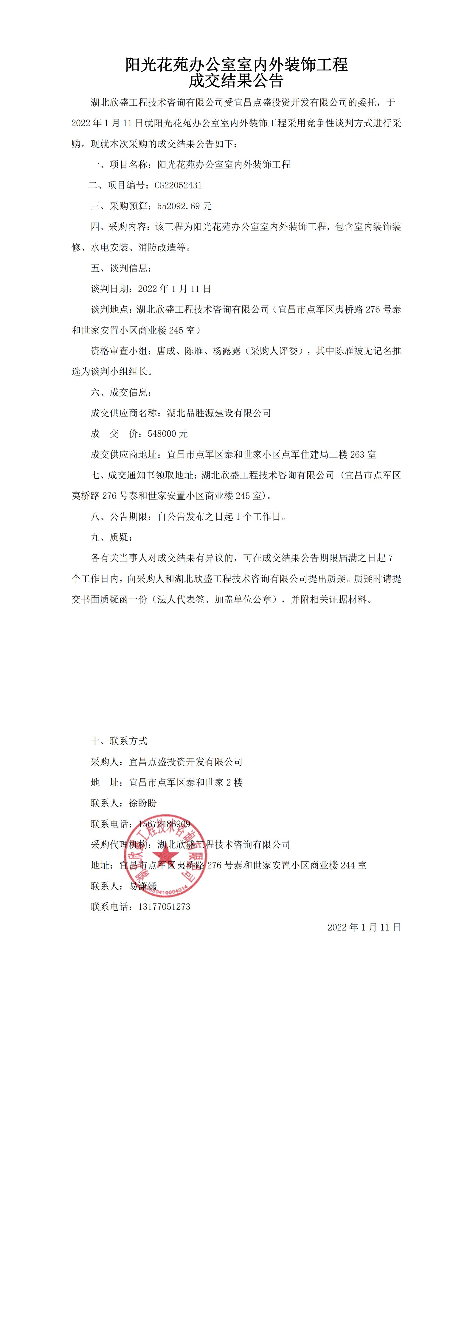 陽(yáng)光花苑辦公室室內(nèi)外裝飾工程成交結(jié)果公告
