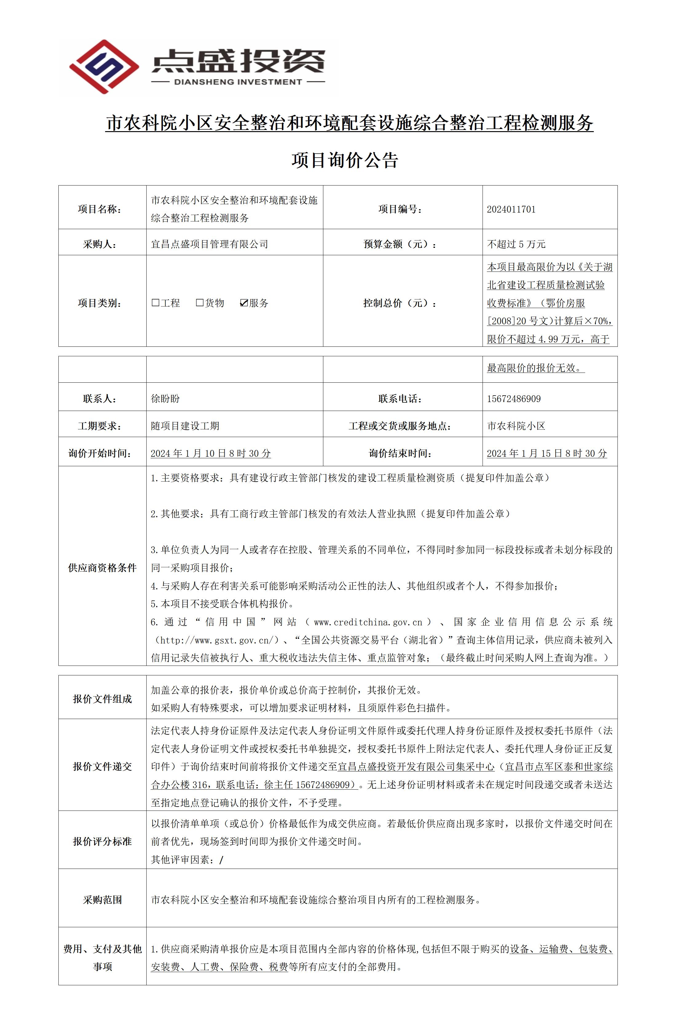 市農(nóng)科院小區(qū)安全整治和環(huán)境配套設(shè)施綜合整治工程檢測服務(wù) 項(xiàng)目詢價(jià)公告