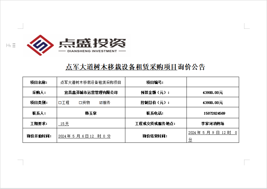 點(diǎn)軍大道樹木移栽設(shè)備租賃采購(gòu)項(xiàng)目詢價(jià)公告