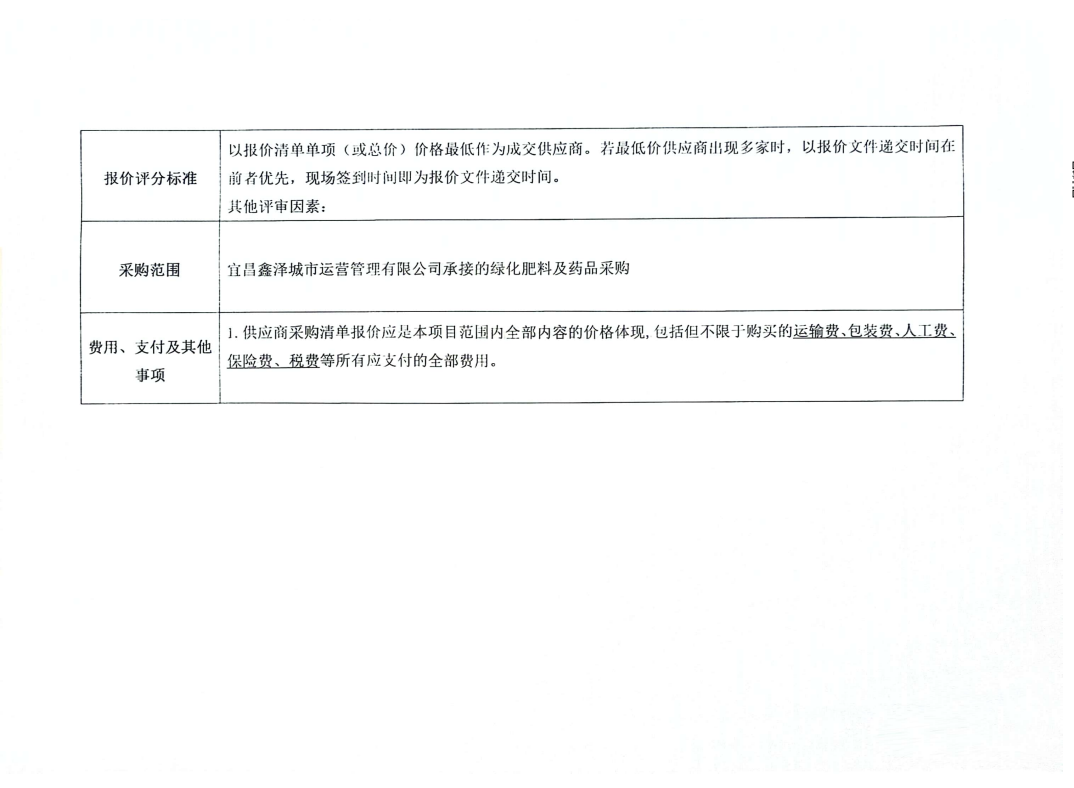 宜昌鑫澤城市運營管理有限公司綠化肥料及藥品采購項目詢價公告