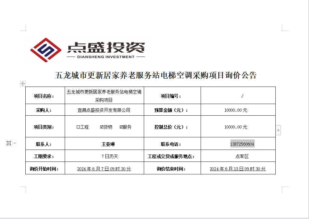 五龍城市更新居家養(yǎng)老服務(wù)站電梯空調(diào)采購(gòu)項(xiàng)目詢價(jià)公告
