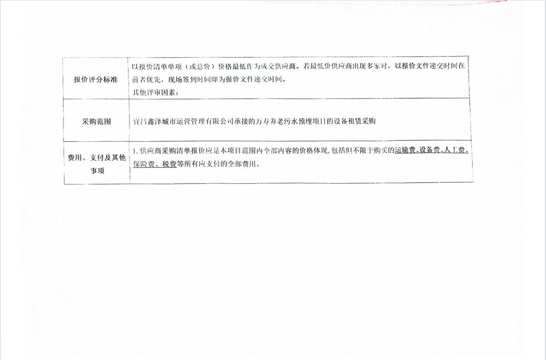 萬壽養(yǎng)老污水預(yù)埋設(shè)備租賃采購詢價(jià)公告