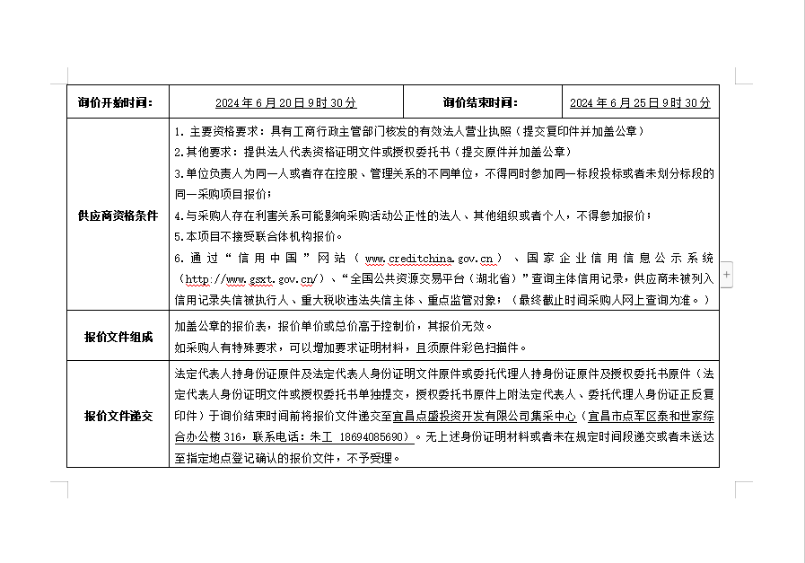 詢價(jià)公告