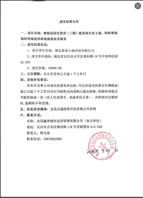 奧錦花園安置房(三期)建設(shè)項(xiàng)目棄土場(chǎng)、材料堆場(chǎng)臨時(shí)用地使用林地報(bào)批技術(shù)服務(wù)成交公告