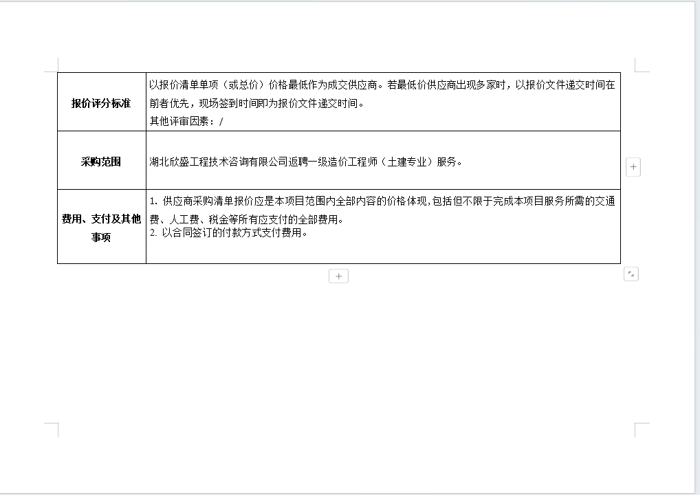 欣盛公司返聘一級(jí)造價(jià)工程師(土建專業(yè))咨詢服務(wù)詢價(jià)公告