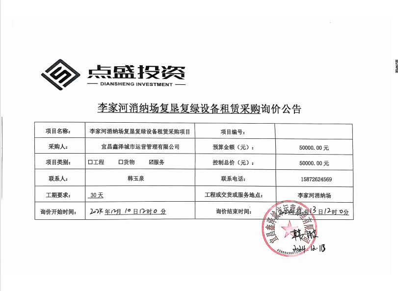 李家河銷鈉場(chǎng)復(fù)墾復(fù)綠設(shè)備租賃采購(gòu)項(xiàng)目詢價(jià)公告