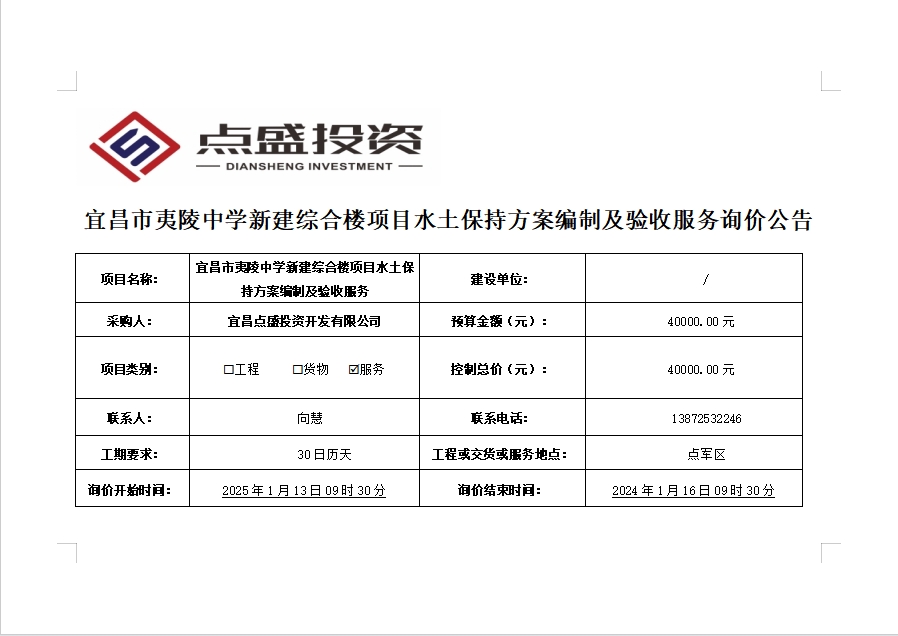 宜昌市夷陵中學新建綜合樓項目水土保持方案編制及驗收服務(wù)詢價公告