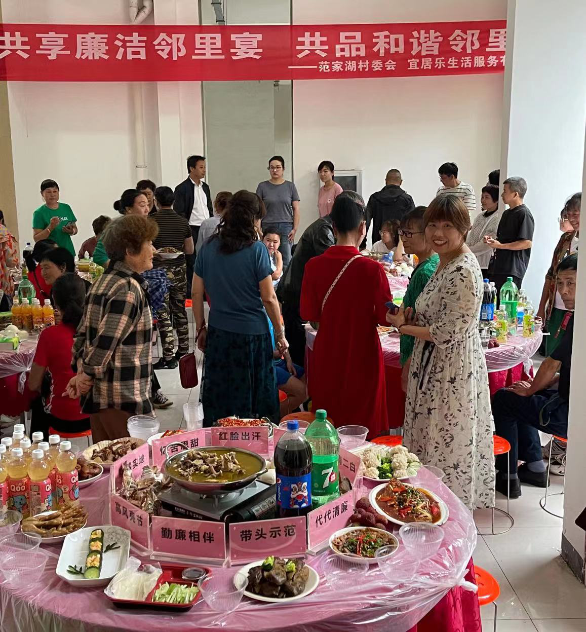 【湖景名苑百人宴】6月18 日上午,范家湖村黨支聯(lián)合轄區(qū)單位、居民、下沉黨員聯(lián)合開展以“共享廉潔鄰里宴,共品和諧鄰里情”為主題的端午節(jié)活動(dòng),讓大家感受到了獨(dú)具一格的“清廉美食魅力”。?